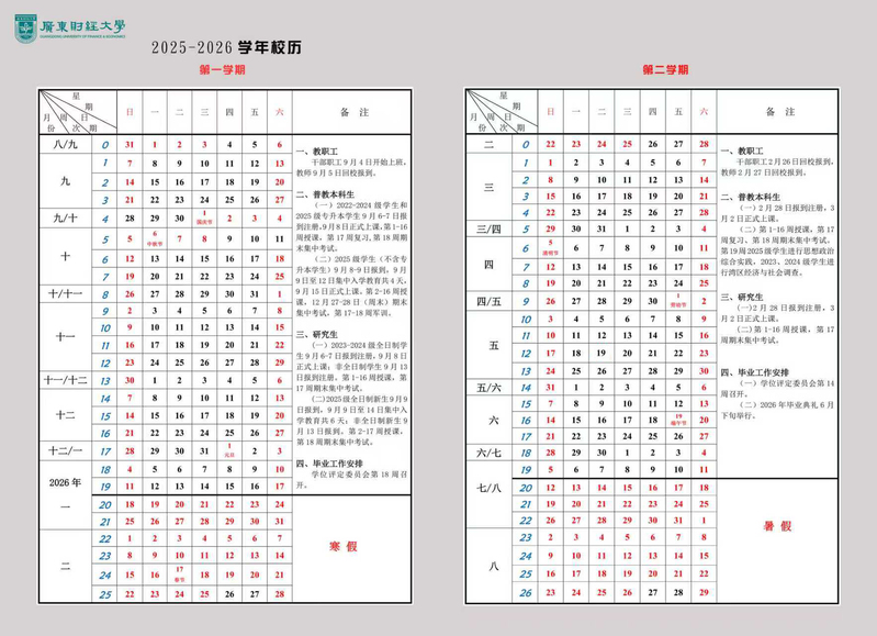 2025-2026学年校历