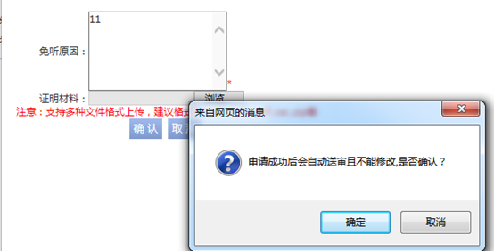 注意:免听原因为必填项,重修的课程不需要上传证明材料;绩点达到3.0申请选修课免听,建议上传一张个人学期成绩单,用于与系统的绩点核对。
